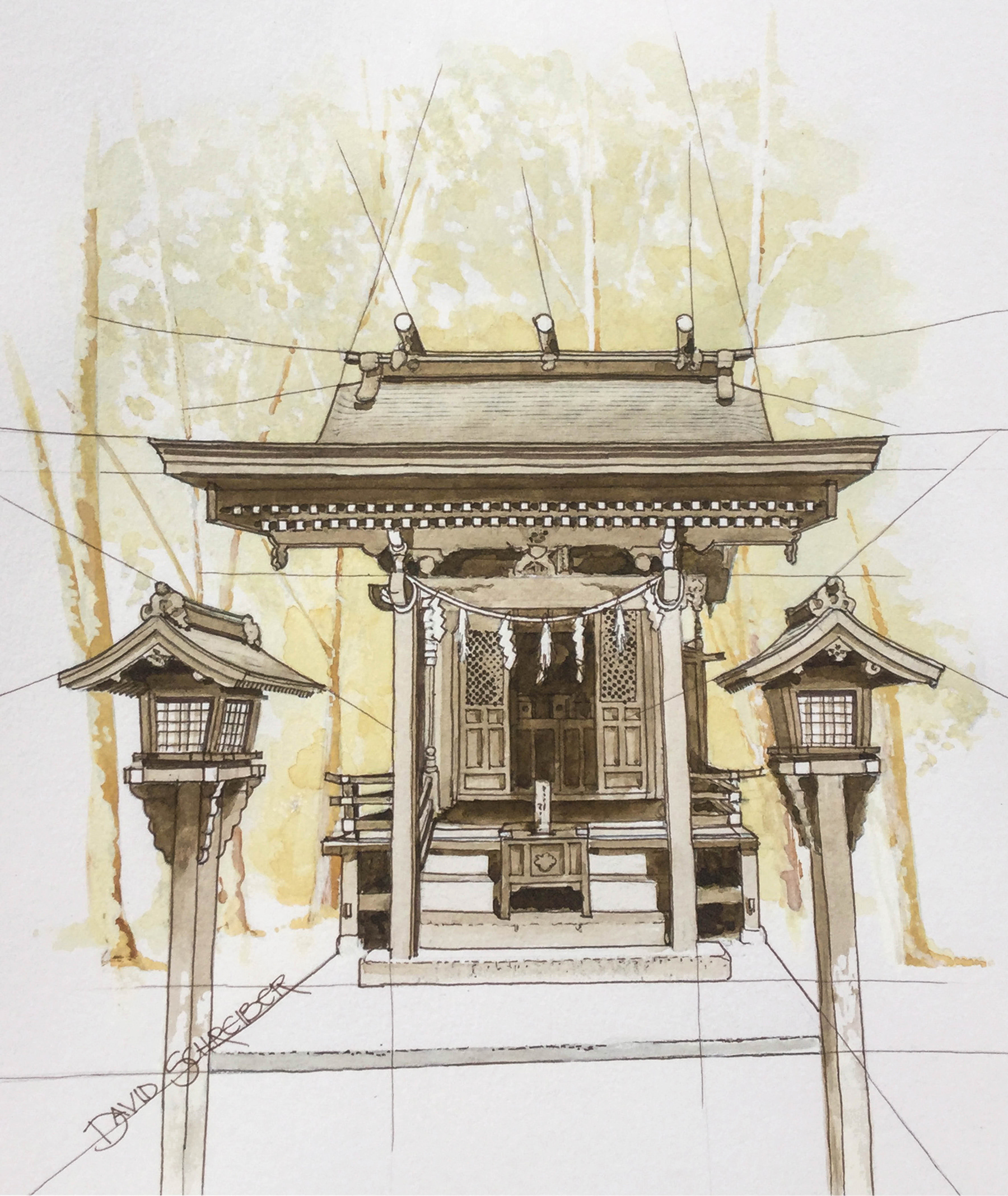 Pen and ink drawings with a wash of acrylic ink or watercolour. Available as an Art Magazine - see my publications page.